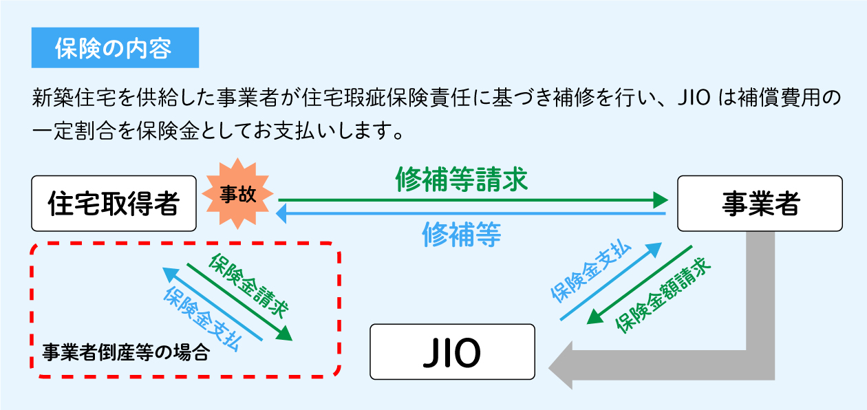 住宅瑕疵担保履行法により定められた「新築住宅を購入する消費者を守る保険」です。住宅瑕疵担保履行法とは、新築住宅を共有する事業者に対して、瑕疵の補修等が確実に行われるよう、保険屋や供託を義務付けるものです。万が一、事業者が倒産した場合でも、2000万円までの補修費用の支払いが保険法人から受けられます。